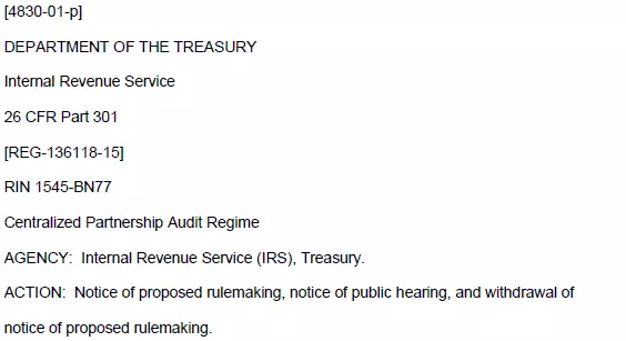 - IRS Releases Proposed Regulations on Centralized Partnership Audit Regime