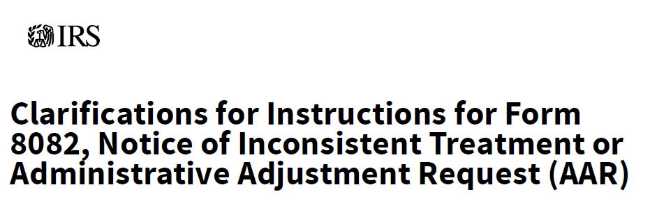 On March 18th, the IRS released clarifications for instructions for Form 8082, Notice of Inconsistent Treatment or Administrative Adjustment Request under the Bipartisan Budget Act (BBA). These clarifications are updates from the 2015 BBA which implemented new partnership audit procedures.