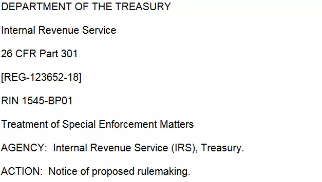 The proposed regulations also provide detail on the treatment of “special enforcement matters?? at Prop. Reg. § 301.7641-7. Under the proposed regulations, the IRS may determine that the centralized partnership audit regime does not apply to the determination or adjustment of a partnership-related item in circumstances where the application of the regime would fail to advance the regime’s overriding goal of efficiently enforcing the tax law with respect to partnership items. The “special enforcement matters?? include: (1) situations where a partnership’s treatment of a partnership item is based on information provided by the partner subject to examination; (2) termination or jeopardy assessments against a partner; (3) criminal investigations of a partner; (4) determinations of a deficiency against a partner that are based on an indirect method of proof of income; (5) situations when a controlled partnership’s period of limitations has run but the controlling partner’s has not (with §§ 267(b) and 707(b) defining “control??); and (6) situations where penalties and taxes are imposed on the partnership under chapter 1 of the Cod. The proposed regulations require the IRS to notify the taxpayer to whom adjustments are made if the adjustments are made outside the centralized partnership audit regime.